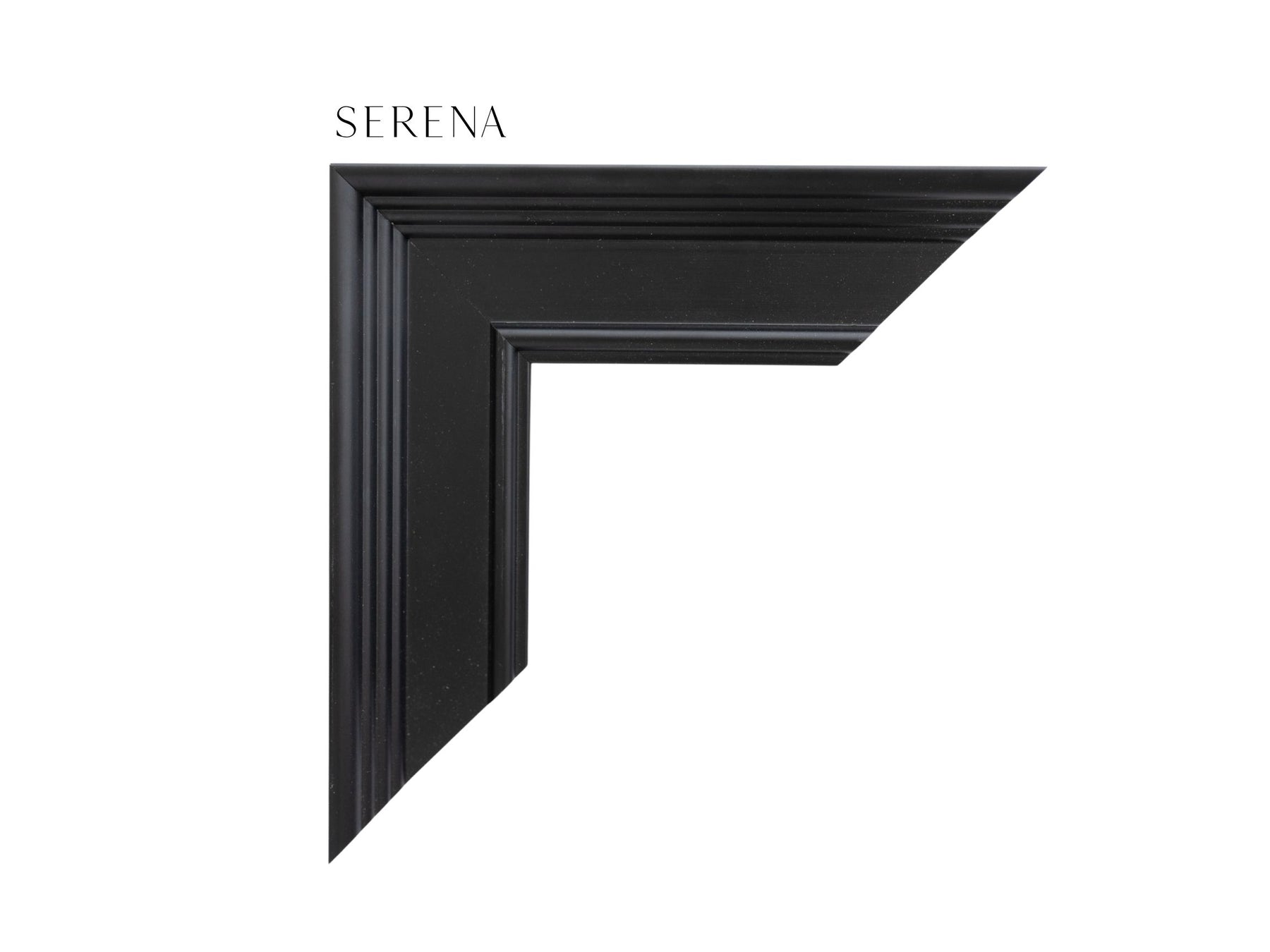 Regular price $225.00 Save $-225.00The Serena features a sleek 2" wide profile with a 1 3/8" depth, finished in a smooth satin black. The stepped edge detail adds subtle dimension, giving the frame a sense of architectural refinement while maintaining a clean, contemporary look. Crafted from solid hardwood, it combines durability with a polished, professional finish.
